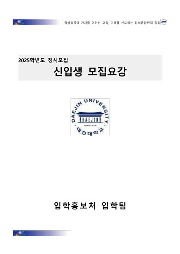 뒤돌아가기 대진대학교http://www.daejin.ac.kr/1191구분사립, 4년제전화031-539-1114주소경기 포천시 호국로 1007 대진대학교입학사이트모집요강 0 댓글 추가하기... 대진대학교 등록된 댓글이 없습니다. 이전글 국제대학교목록