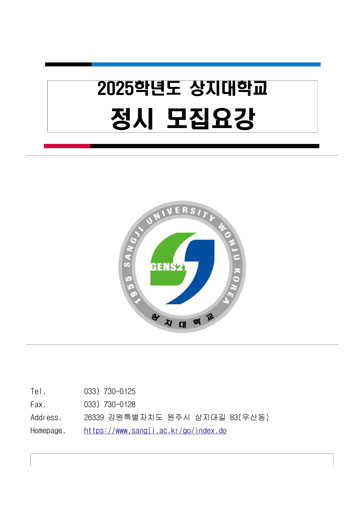 뒤돌아가기 상지대학교http://www.sangji.ac.kr/818구분사립, 4년제전화033-730-0114주소강원 원주시 상지대길 83 입학사이트모집요강 0 댓글 추가하기... 상지대학교 등록된 댓글이 없습니다. 이전글 서울여자간호대학교목록다음글 한국전통문화대학교